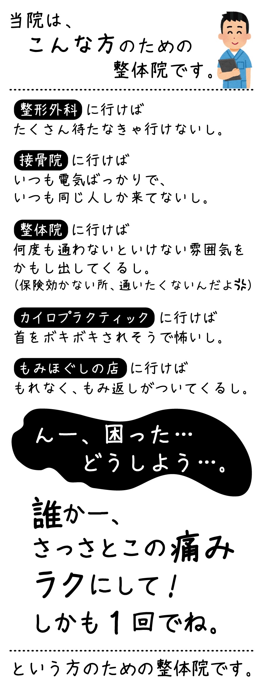 なのに、整体院では寝かされる。これが治らない理由です。 |