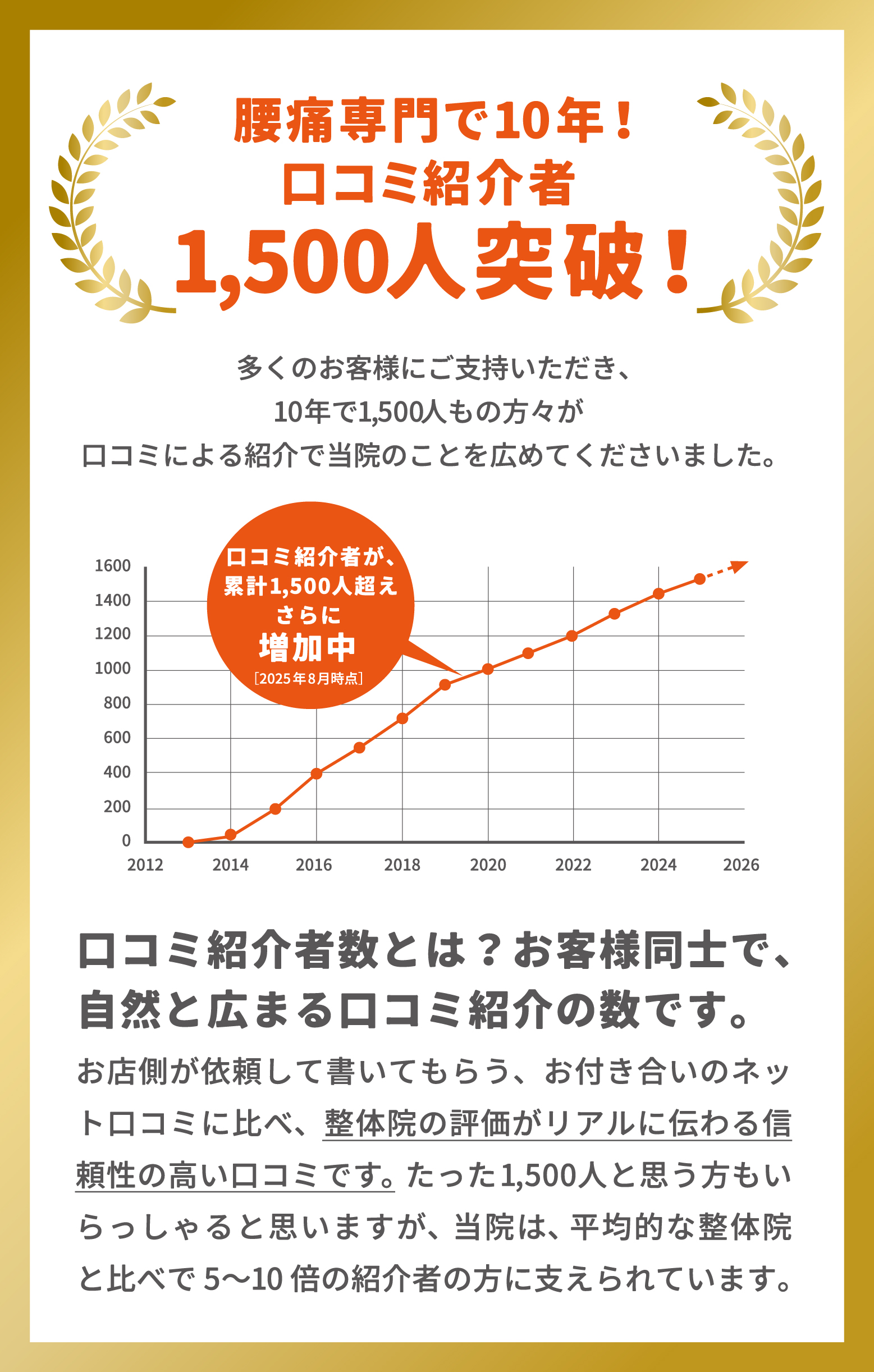 腰だけの痛みなら、10人中7人以上が1年以上ラク