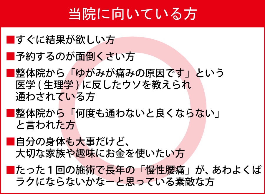「腰だけが痛い人」なら 10人中7人 (1回だけで1年以上ラク) |