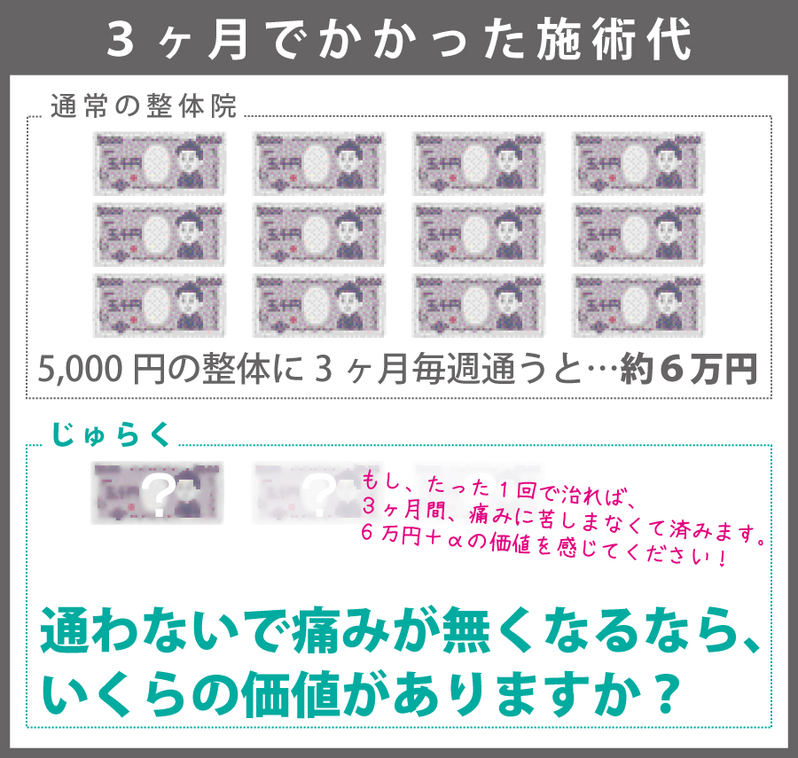 | 他院(何回か通った後) | ⇒ | じゅらく(たった1回) |