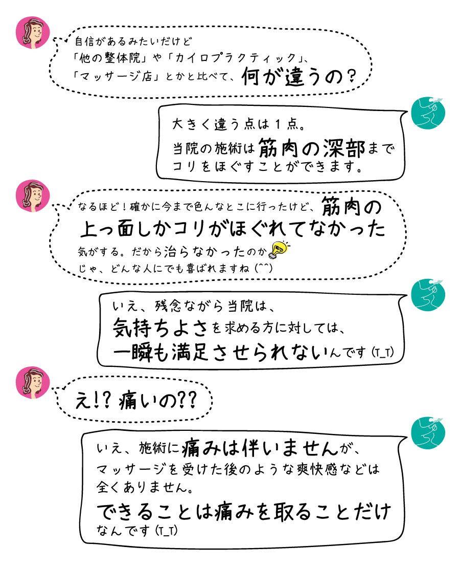 他院のように何度も通わずとも、1回でラクが続く理由があります。