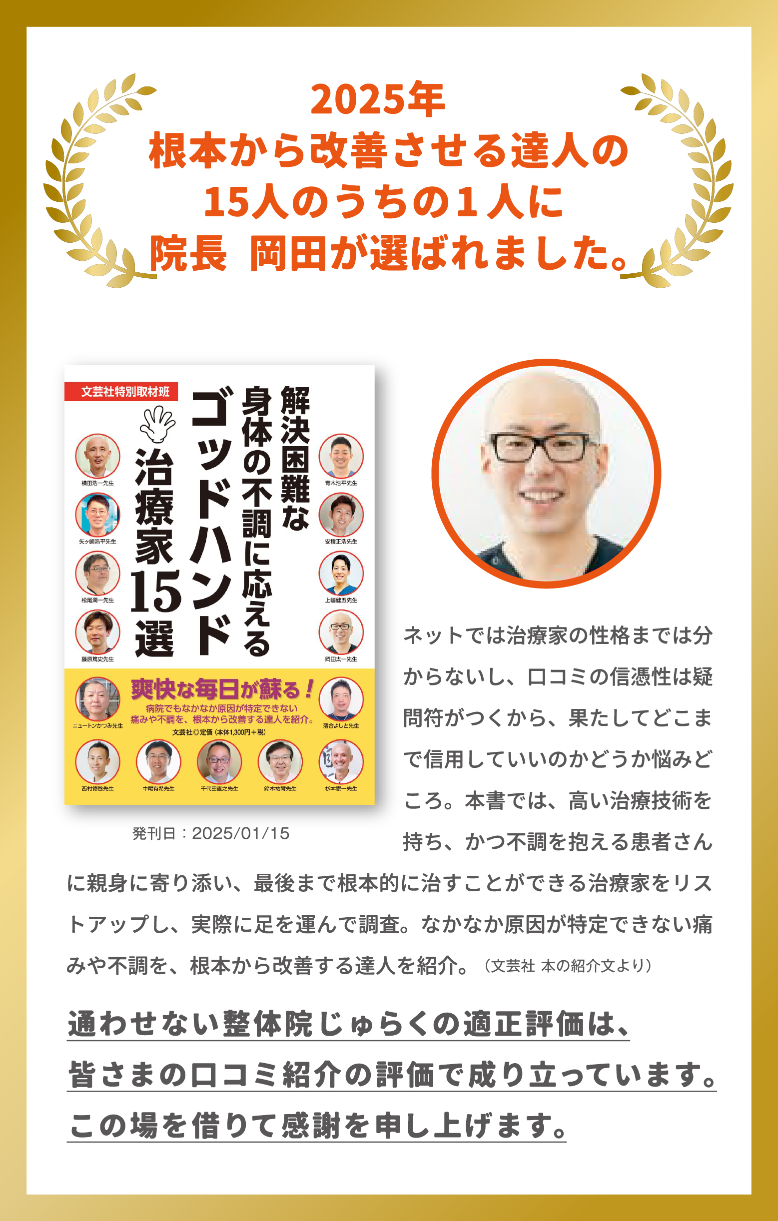 いざとなったら、じゅらくに行けば良いと安心感を感じつつも、数年以上、行かないまま快適な腰の状態を保てる