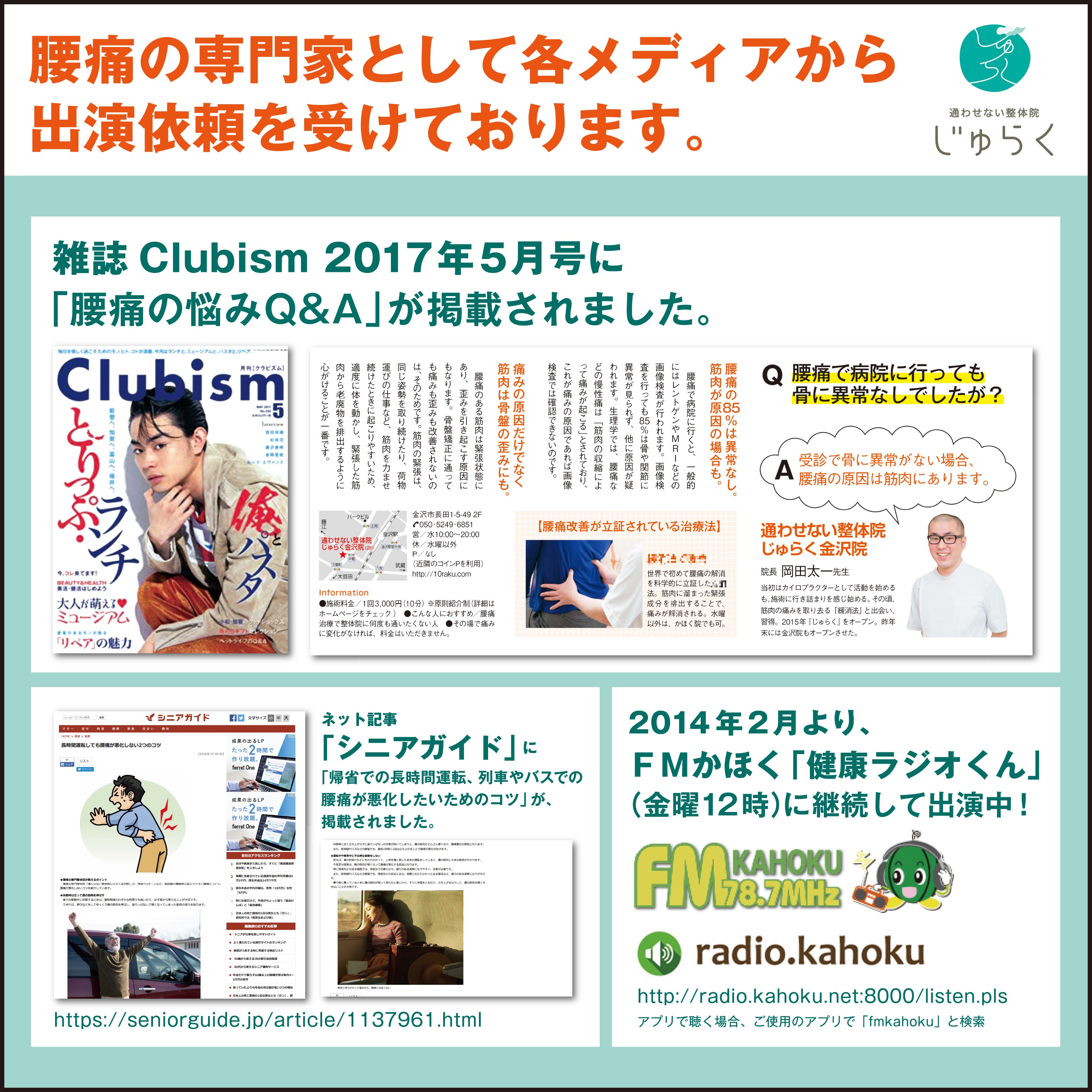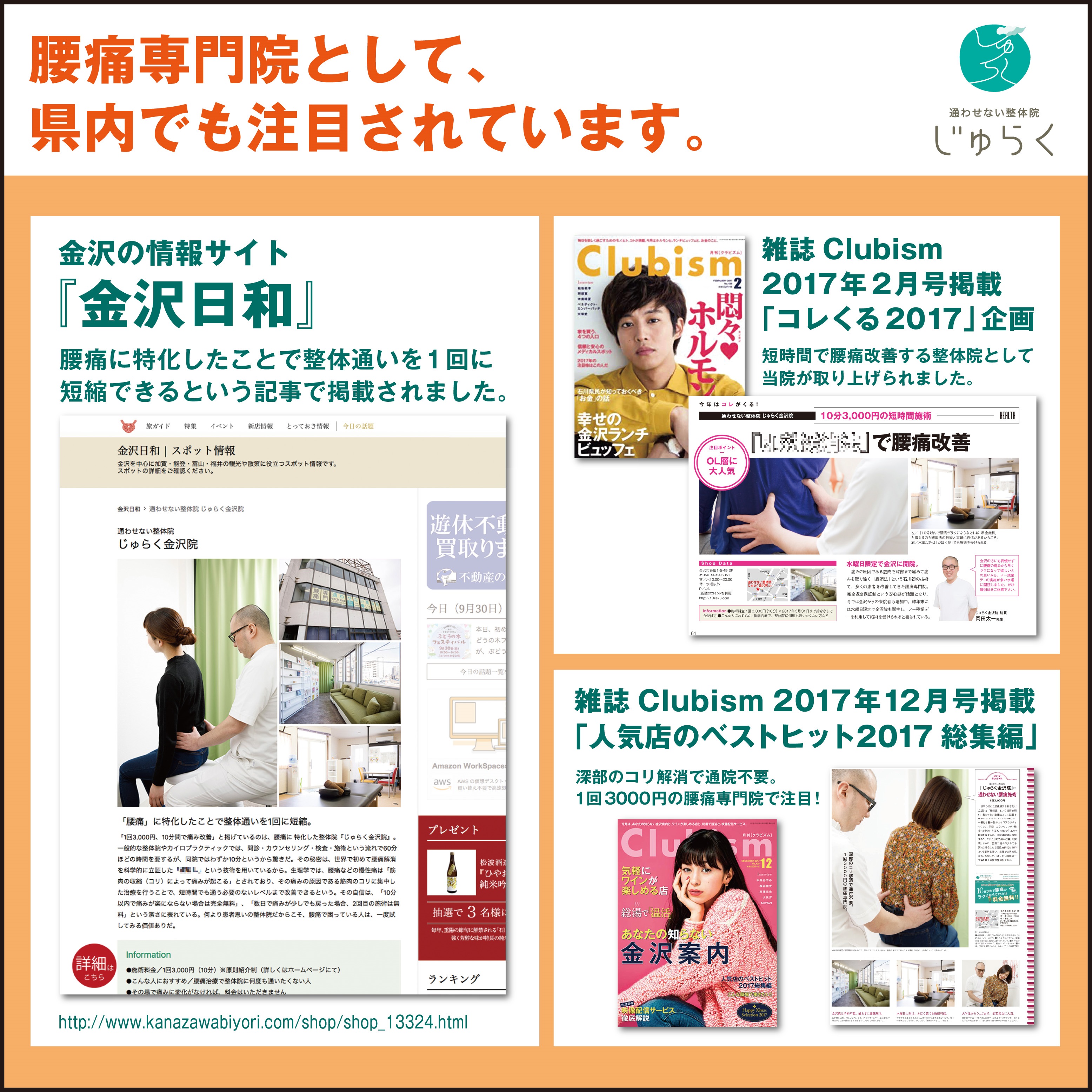 金沢情報で、じゅらくの掲載記事を見つけて、「あの時はツラかったな」と腰痛を乗り越えた自分に誇りを感じれる